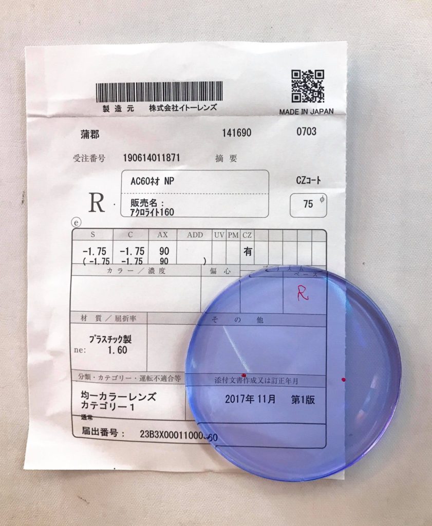 日中の室内業務も行えるレンズとのことで、同じレンズにオプションをお付けしてのフレームとセットでオーダーいただきました。