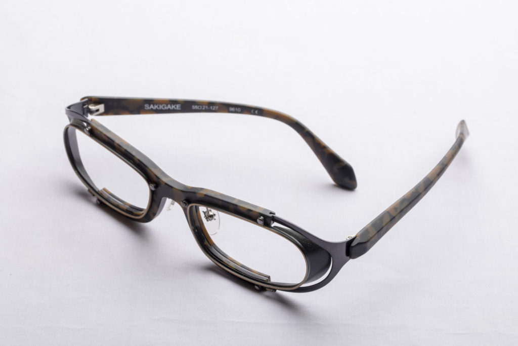 ゴーグルっぽいデザインのメタルとセル素地のコンビネーションアイテム。