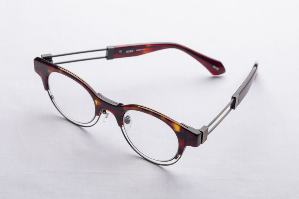 ボストン型に金属リム部分が二重になったデザインです。レスザンらしい、ひと癖持たせたデザインです。