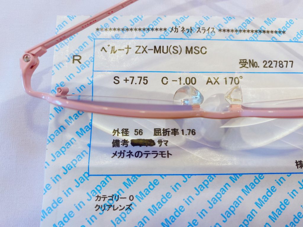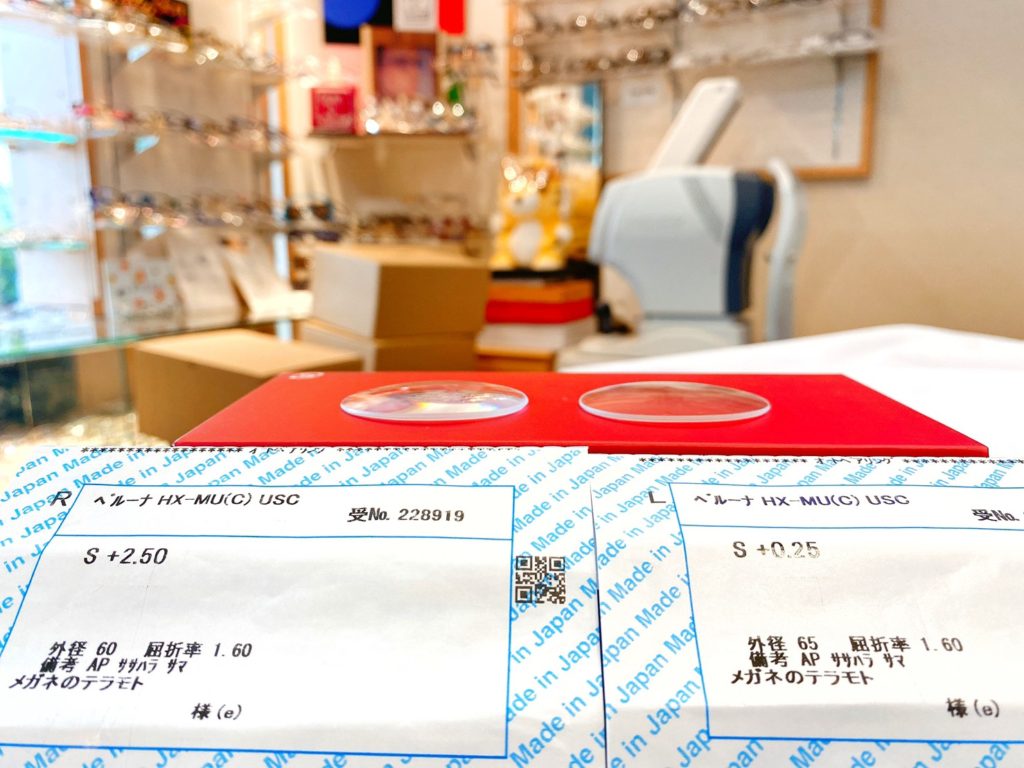 作製当初は、左右での視力さがあり(#不同視)、矯正で差が少しまとまってきての度数変更依頼でした